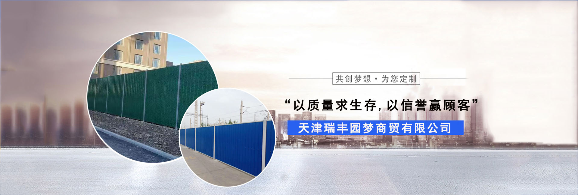 天津瑞丰园梦商贸有限公司主营彩钢围挡板,建筑围挡,工程围挡板,围挡板批发,围挡板出租,围挡板租赁,围挡销售,围挡板安装,彩钢二楼等,产品用于建筑业的各个角落,厂房,大型仓库等等,我们产品受到广大新老客户的一致好评。 公司从2001年开始从事该行业,诚信经营是我们的宗旨,我们本着“以质量求生存,以信誉赢顾客,以科技求发展,以创行业精品为目标”与多家企业建立了长期的合作关系。在天津市及各天津各区,北京,河北等地与多家企业达成长期合作关系。